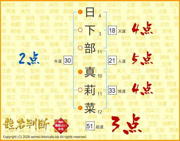 日下部真莉菜さんの地運は33画の4点!