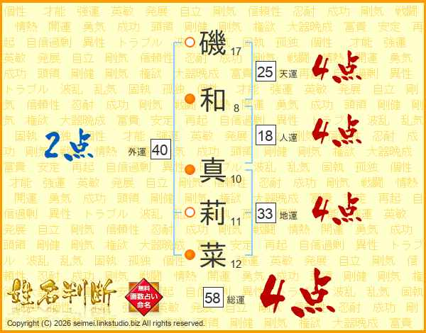磯和真莉菜さんの総運は58画の4点!