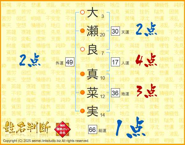 大瀬良真菜実さんの総運は66画の1点!