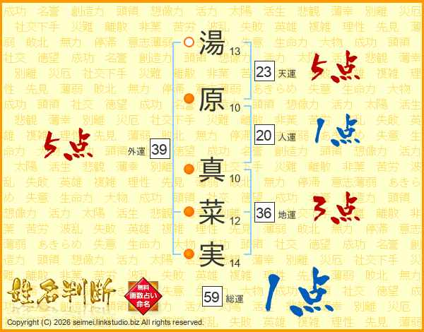湯原真菜実さんの天運は23画の5点!