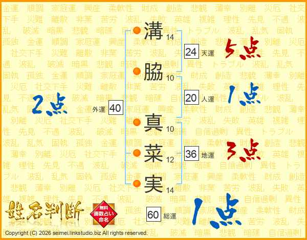溝脇真菜実さんの天運は24画の5点!