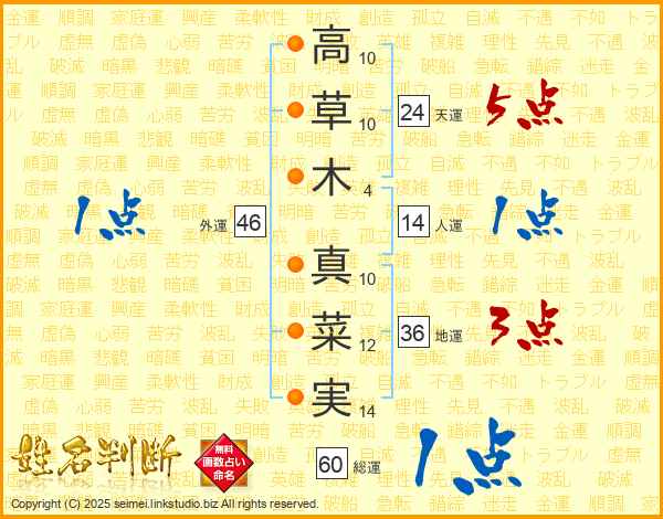 高草木真菜実さんの総運は60画の1点!