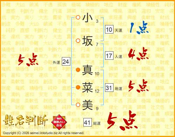 小坂真菜美さんの総運は41画の5点!