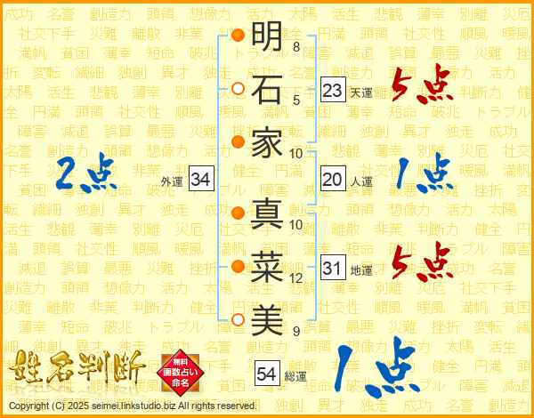 明石家真菜美さんの総運は54画の1点!