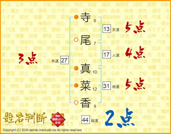 寺尾真菜香さんの天運は13画の5点!