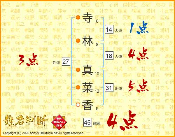 寺林真菜香さんの総運は45画の4点!