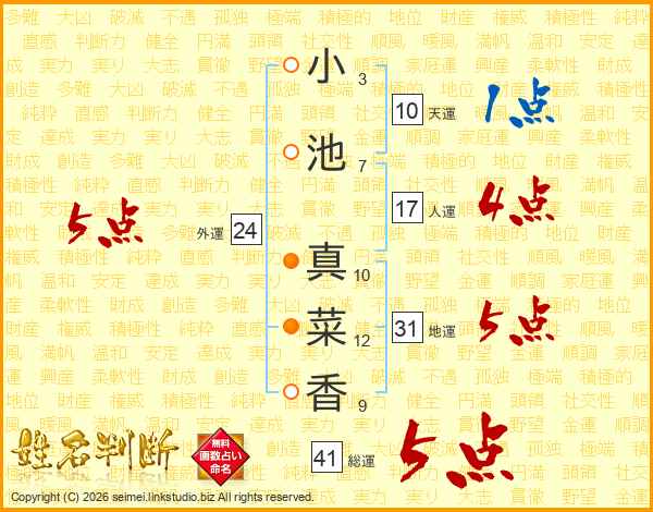 小池真菜香さんの総運は41画の5点!