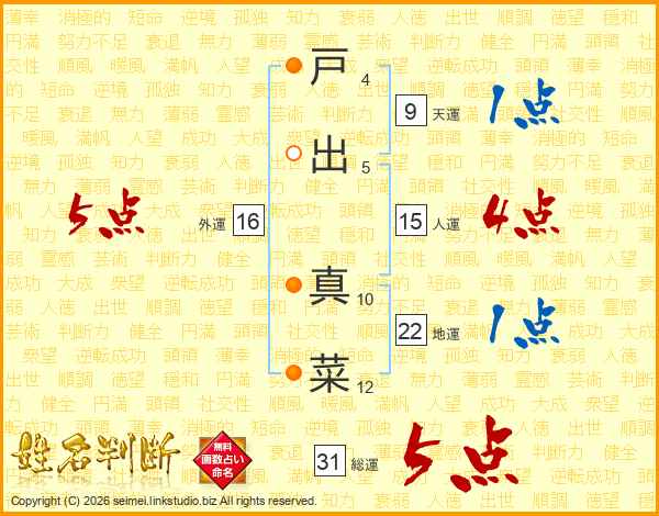 戸出真菜さんの外運は16画の5点!