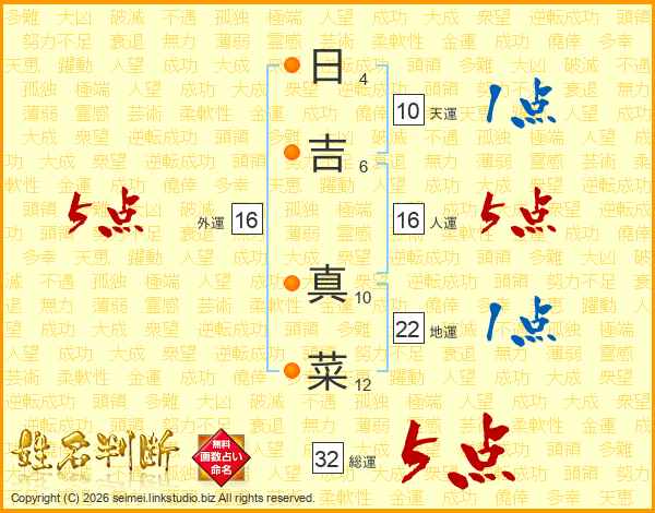 日吉真菜さんの総運は32画の5点!