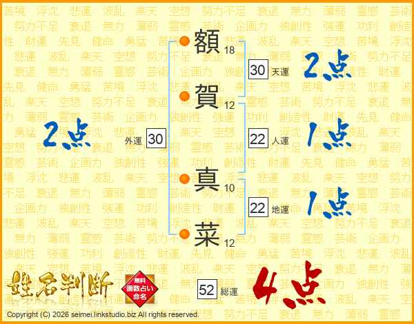 額賀真菜さんの総運は52画の4点!