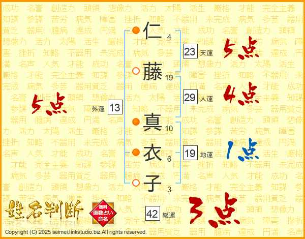 仁藤真衣子さんの天運は23画の5点!