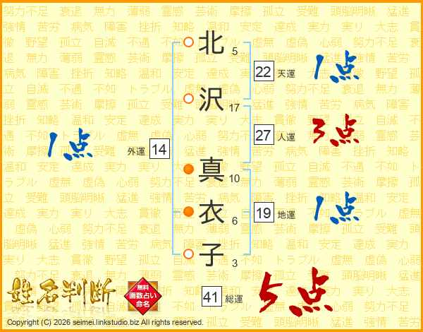 北沢真衣子さんの総運は41画の5点!