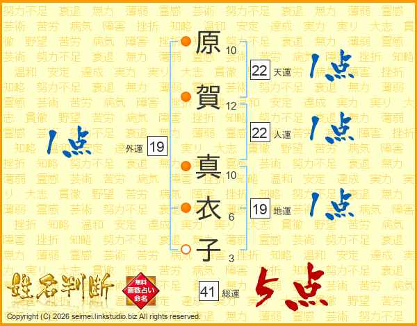 原賀真衣子さんの総運は41画の5点!