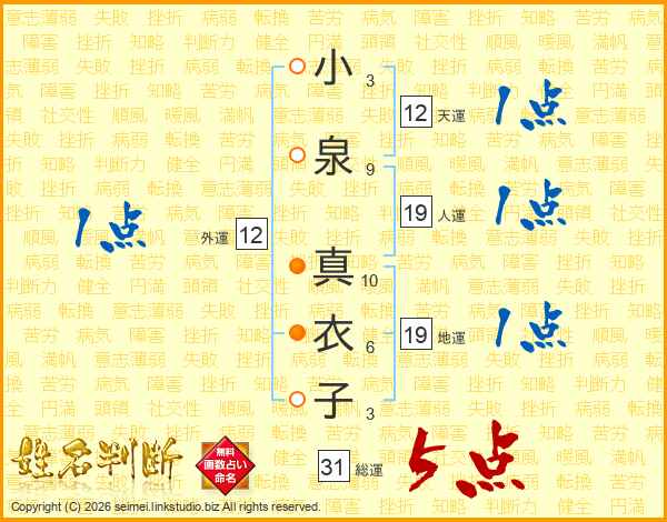 小泉真衣子さんの総運は31画の5点!