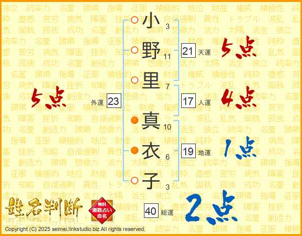 小野里真衣子さんの総運は40画の2点