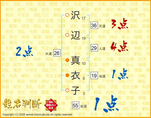 沢辺真衣子さんの外運は26画の2点!