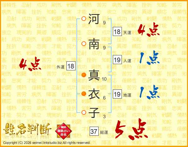 河南真衣子さんの総運は37画の5点!