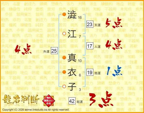 澁(16画)江(7画) 真(10画)衣(6画)子(3画)