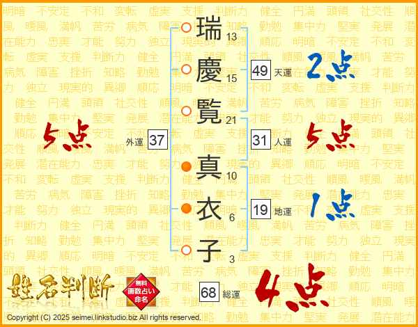 瑞慶覧真衣子さんの外運は37画の5点!