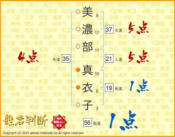 美濃部真衣子さんの天運は37画の5点!