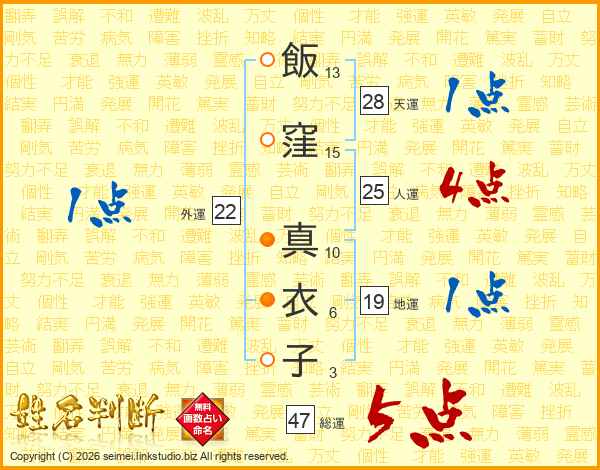 飯窪真衣子さんの総運は47画の5点!