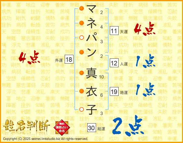 マネパン真衣子さんの天運は11画の4点!