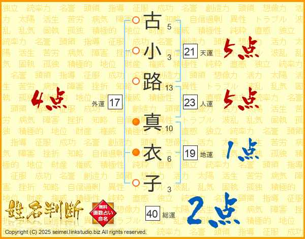 古(5画)小(3画)路(13画) 真(10画)衣(6画)子(3画)