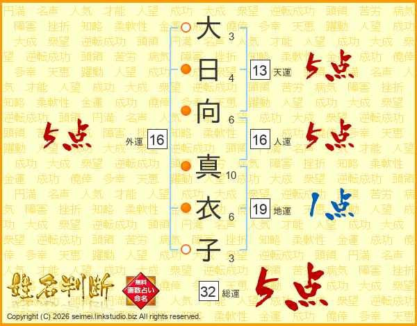 大日向真衣子さんの外運は16画の5点!