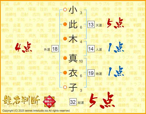 小此木真衣子さんの総運は32画の5点!