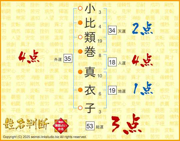 小(3画)比(4画)類(19画)巻(8画) 真(10画)衣(6画)子(3画)