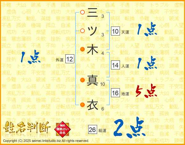三ツ木真衣さんの総運は26画の2点!