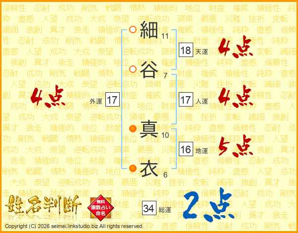 細谷真衣さんの天運は18画の4点!
