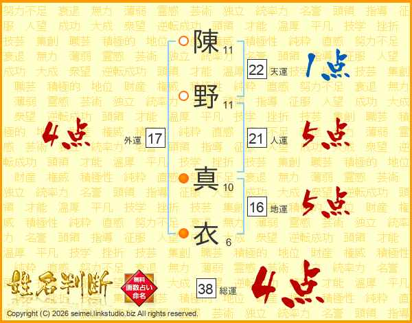 陳野真衣さんの総運は38画の4点!