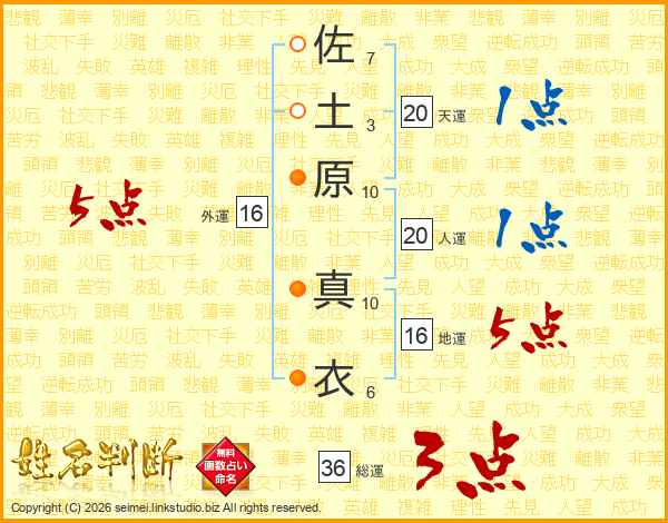 佐土原真衣さんの総運は36画の3点!