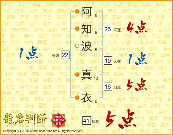 阿知波真衣さんの天運は25画の4点!