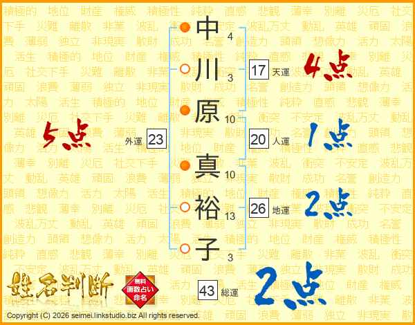 中川原真裕子さんの地運は26画の2点!