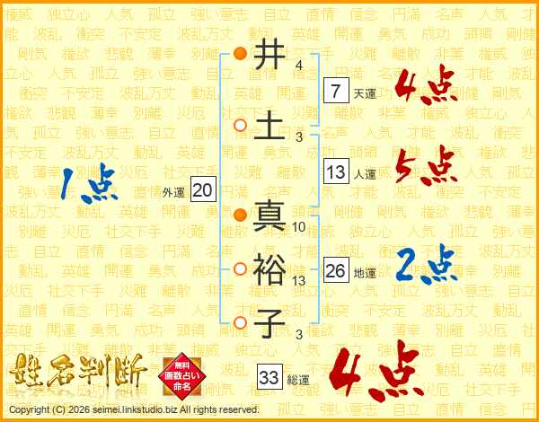 井土真裕子さんの総運は33画の4点!