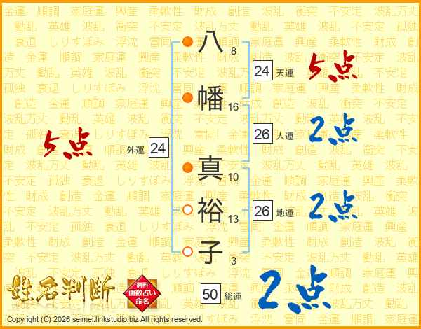 八幡真裕子さんの外運は24画の5点!