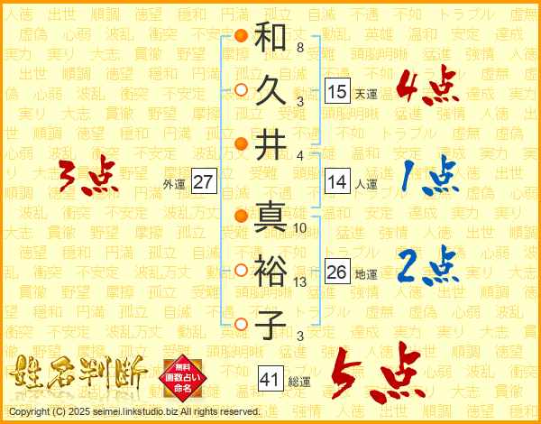 和(8画)久(3画)井(4画) 真(10画)裕(13画)子(3画)