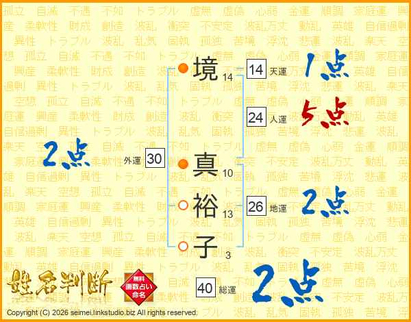 境真裕子さんの総運は40画の2点!