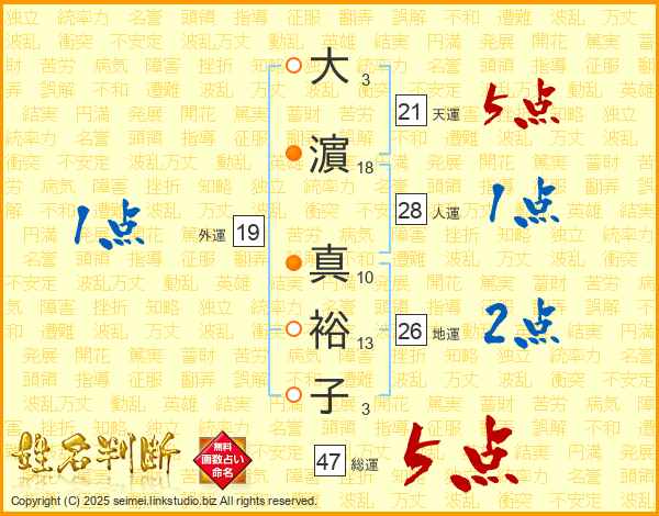 大濵真裕子さんの総運は47画の5点!