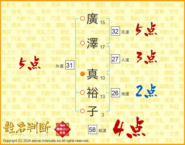 廣澤真裕子さんの総運は58画の4点!