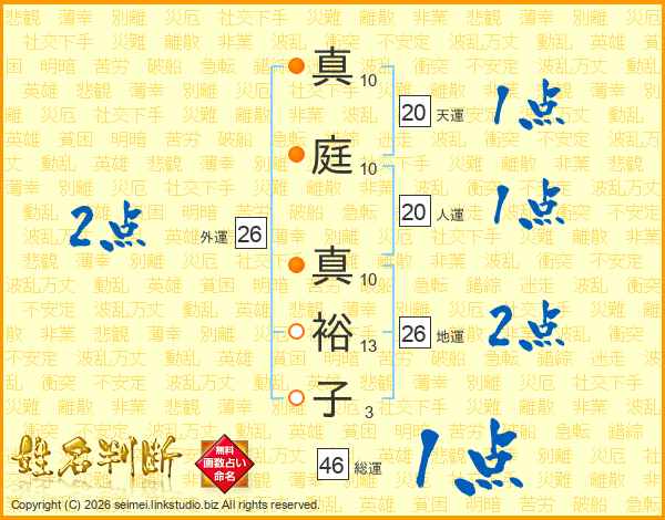 真庭真裕子さんの外運は26画の2点!