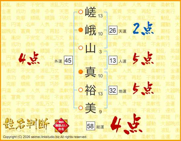 嵯峨山真裕美さんの総運は58画の4点!