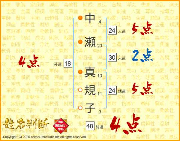 中瀬真規子さんの総運は48画の4点!