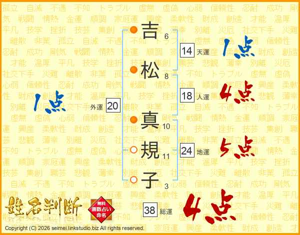 吉(6画)松(8画) 真(10画)規(11画)子(3画)