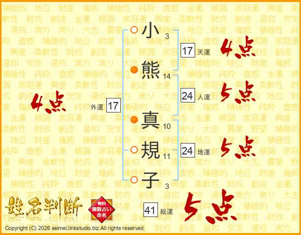 小熊真規子さんの総運は41画の5点!