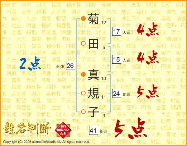 菊田真規子さんの総運は41画の5点!