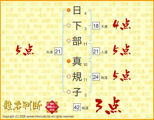 日下部真規子さんの外運は21画の5点!