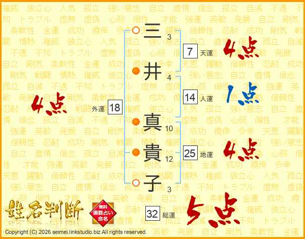 三井真貴子さんの総運は32画の5点!